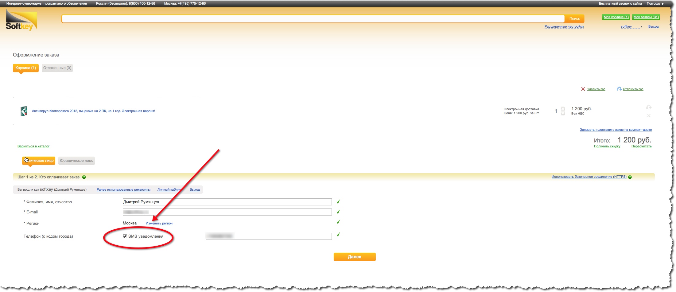 к сожалению, действительно есть такая проблема, увы, но форму авторизации в корзину не разрешают добавить маркетологи Лаборатоии Касперского, но вы всегда можете оформить заказ под своим логином на http://www.softkey.ru/